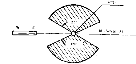 4.3.3 指點(diǎn)信標(biāo)臺(tái)向空中發(fā)射垂直扇型波束。其覆蓋區(qū)為,高度50—100m時(shí),縱向?qū)挾葹?00—400m;高度200—400m時(shí),縱向?qū)挾葹?00—800m(圖 5)。