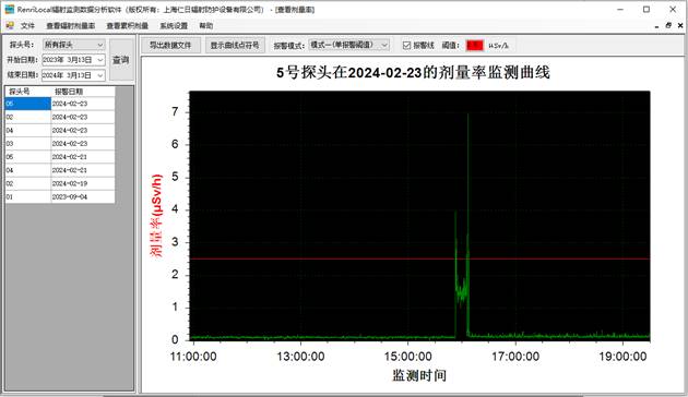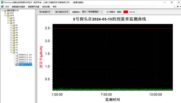 6、數(shù)據(jù)分析:免費提供功能強大的RenLocal輻射監(jiān)測數(shù)據(jù)分析軟件,可通過曲線和棒狀圖的形式分析歷史劑量率和累積劑量數(shù)據(jù)以及實時查詢報警數(shù)據(jù)與統(tǒng)計分析等