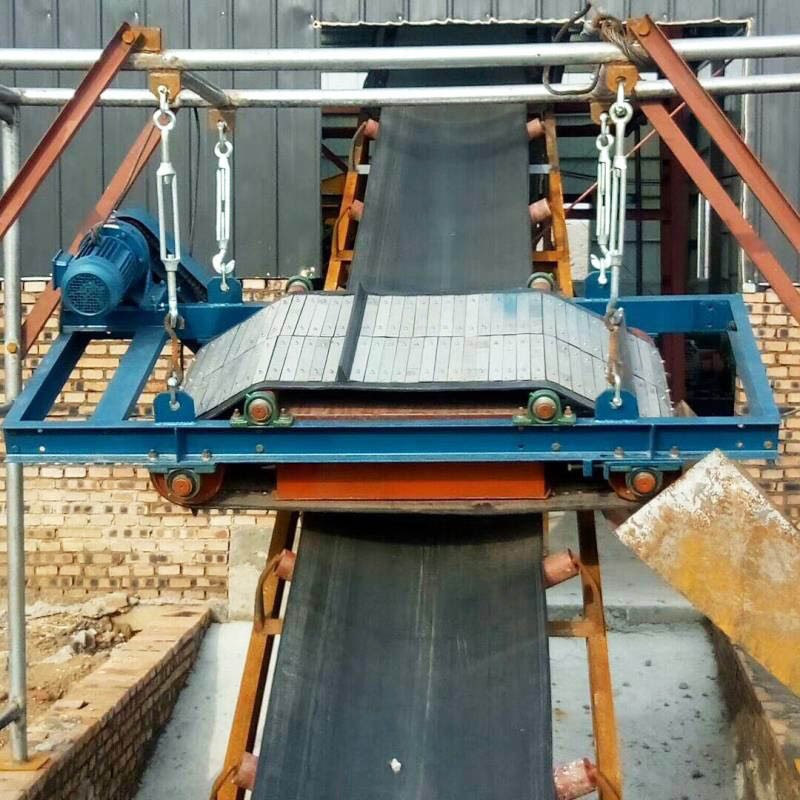 除鐵器自卸皮帶的運(yùn)行方向與輸送皮帶運(yùn)行方向垂直的方向自動(dòng)清除鐵磁雜物??砂惭b在輸送皮帶上方(在除鐵器下方宜安裝非導(dǎo)磁直托輥)。